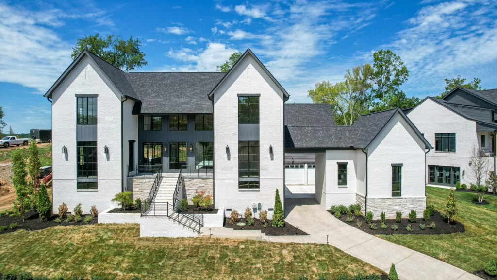 modern white and grey two story home from our Nashville home builder for new homes and new construction in Franklin TN